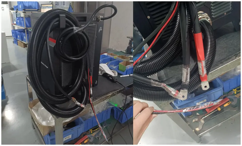 The 2pcs forklift chargers are 400VAC 3 phase 5 wire and with CAN bus.Input,output and CAN cables are undetermined according to customer's requirements.