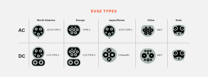 The type of interface refers to the vehicle's charging plug and socket. Due to the lack of a global standard, different regions have adopted distinct interfaces for AC and DC charging. Here’s an overview of the most widely used interfaces: