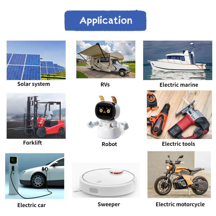 3.2V IFP20100140A-27Ah is used in toys, power tools, household appliances, consumer electronics, ships, golf carts, submarines, electric bicycles/scooters, electric vehicles, electric wheelchairs, power systems, solar energy storage systems, uninterruptible power supplies, electric forklifts, energy storage ESS home energy storage electric vehicles.
